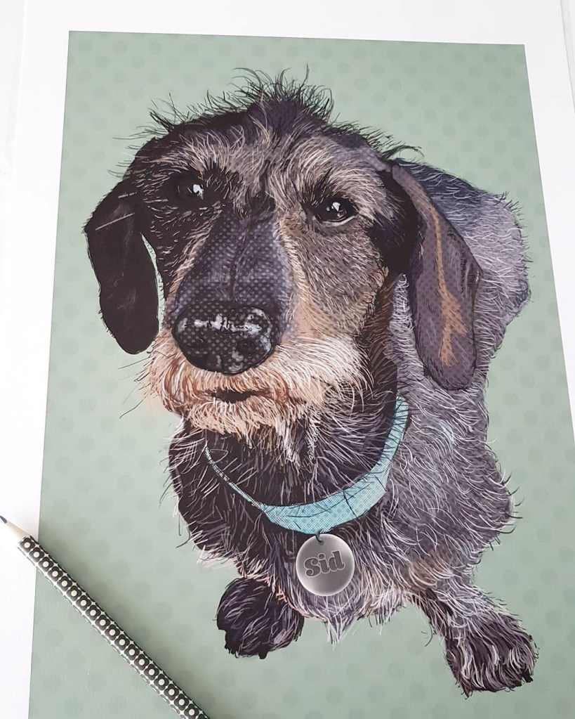 Really pleased to have just received great feedback for a commission I’ve just sent off. Meet handsome Sid, he’s a wire haired Dachshund. I was commissioned by my customers to create a portrait of Sid as a birthday/retirement gift.